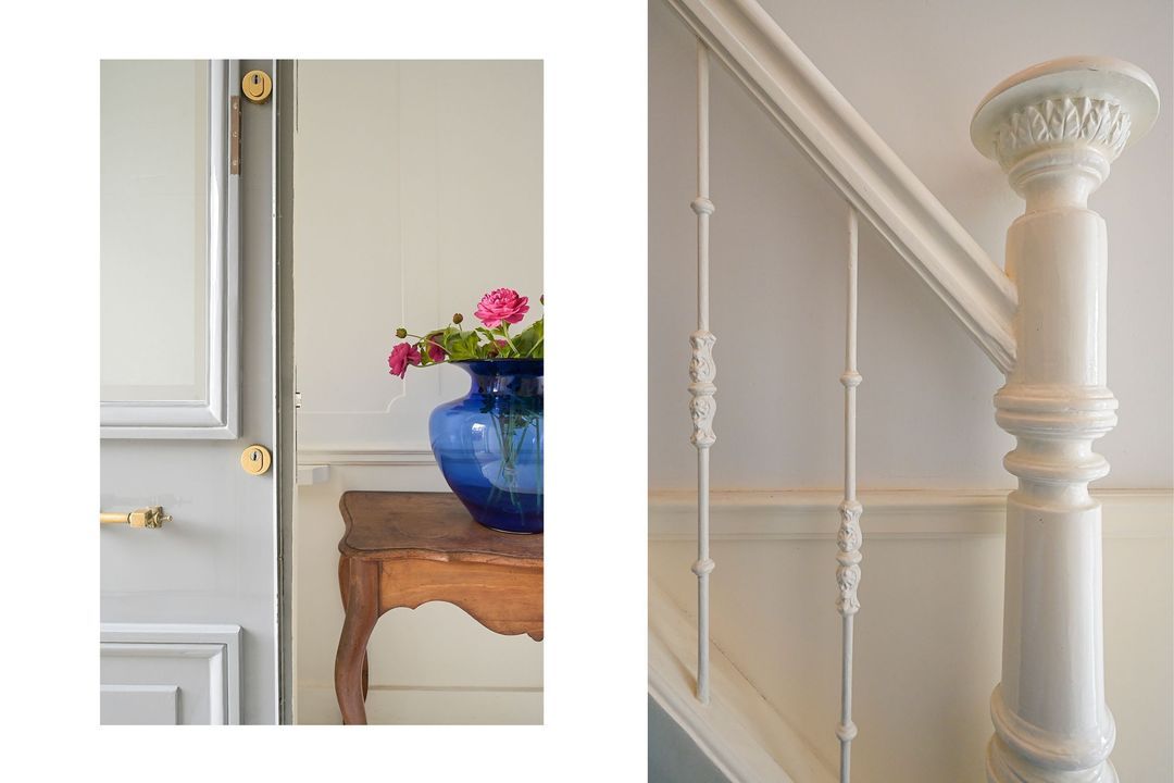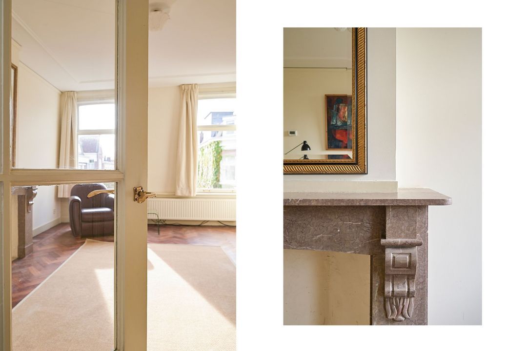 Beiden verdiepingen hebben veel charmante originele details: marmeren schouwen, lijstenplafonds, paneeldeuren, origineel houtwerk.