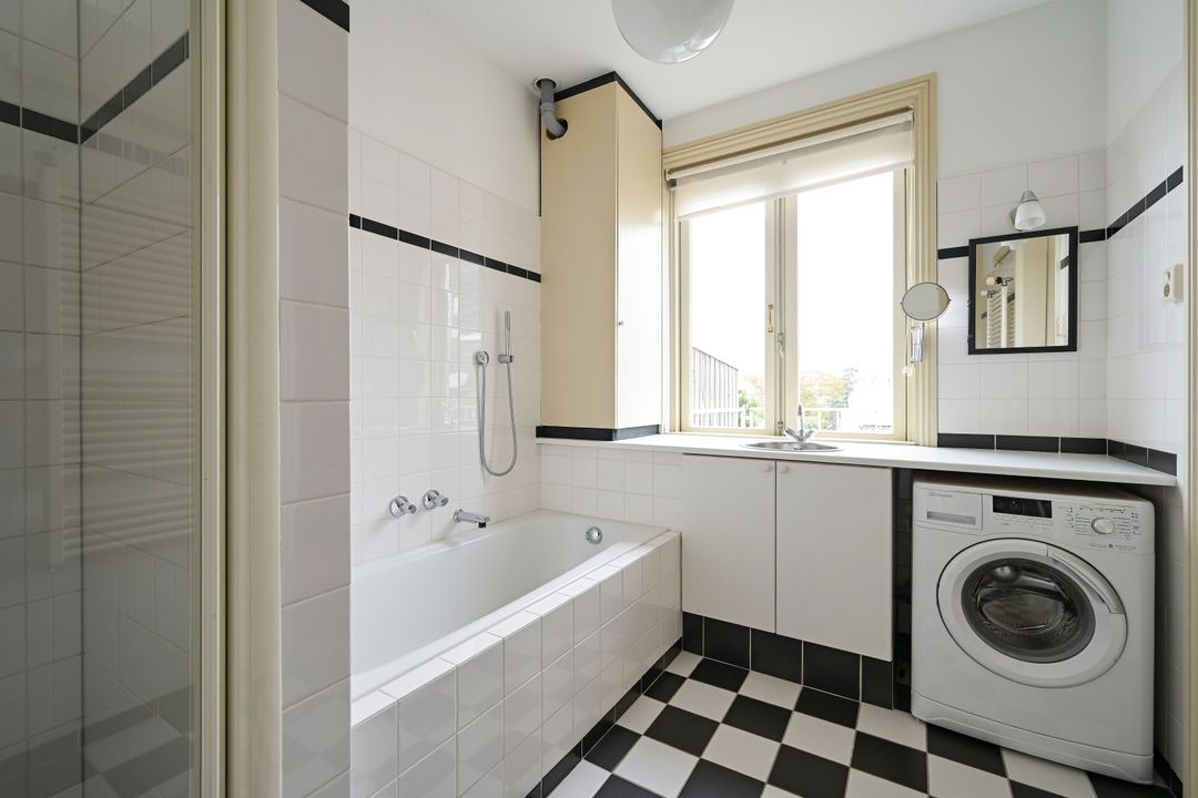 Entree, gemeenschappelijke hal met mooie marmeren vloer. Voordeur, trap naar overloop 1e verdieping met ruimte voor een kapstok of mooie spiegel, trap naar overloop 2e verdieping met toegang tot het appartement. Ruime woonkamer met annex zijkabinet en fantastisch uitzicht door de Billitonstraat. Einde van de middag kan men, bij het juiste weer, genieten van spectaculaire zonsondergangen. Twee vaste kasten en een doorgang naar de achterkamer, met eveneens twee vaste kasten. In de achterkamer een nette open keuken en openslaande deuren naar het prachtige terras. Badkamer met ligbad, inloopdouche, wastafel, opstelplaats wasmachine en separate w.c. met fontein. Opstelplaats C.v.-ketel.