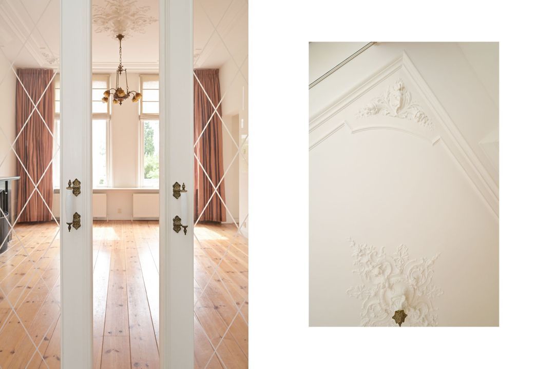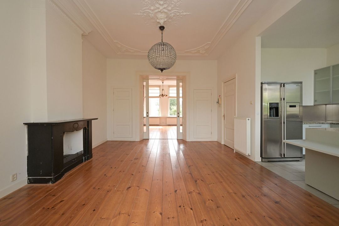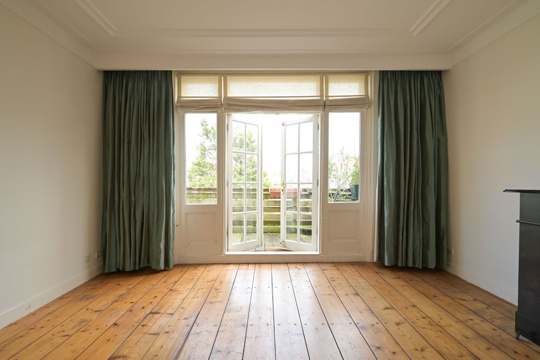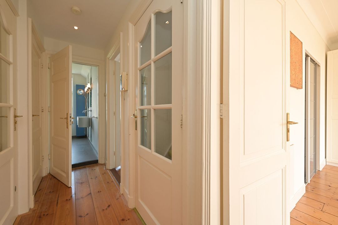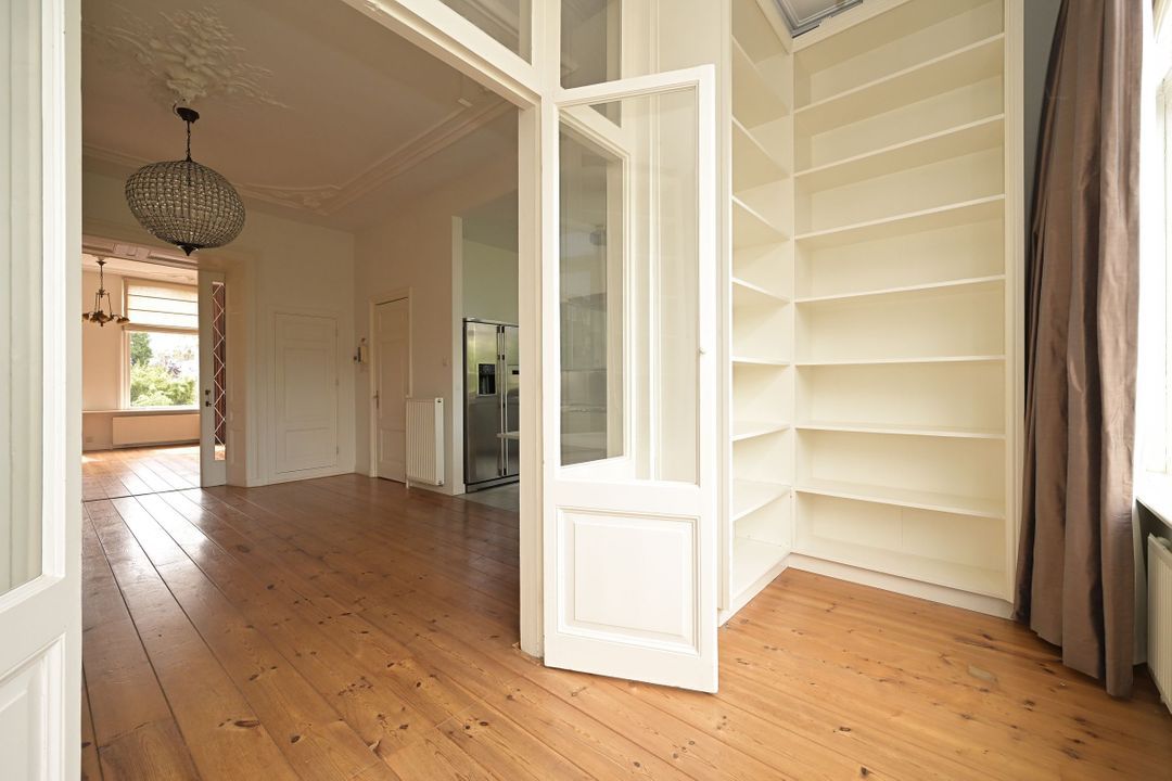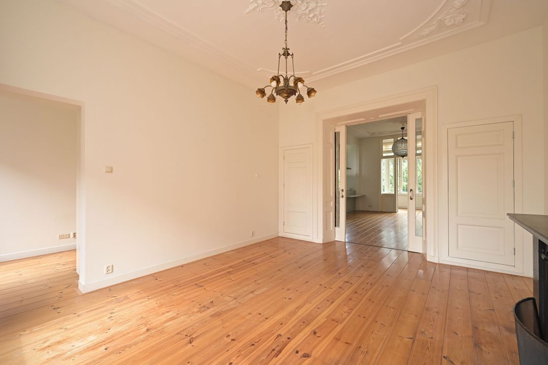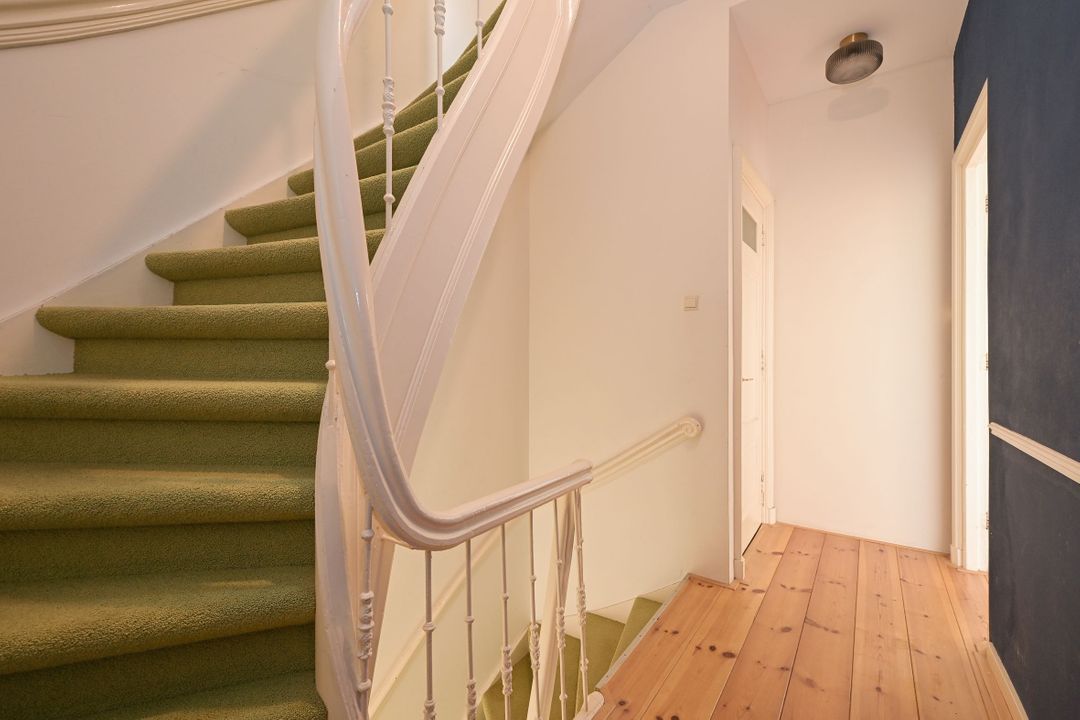 Dit ruime 3-laags bovenhuis heeft drie slaapkamers en 3 badkamers, veel stijlvolle ornamenten, zoals een originele suiteseparatie met paneel(schuif)deuren, marmeren schouwen, ornamenten plafonds en een speels trappenhuis.