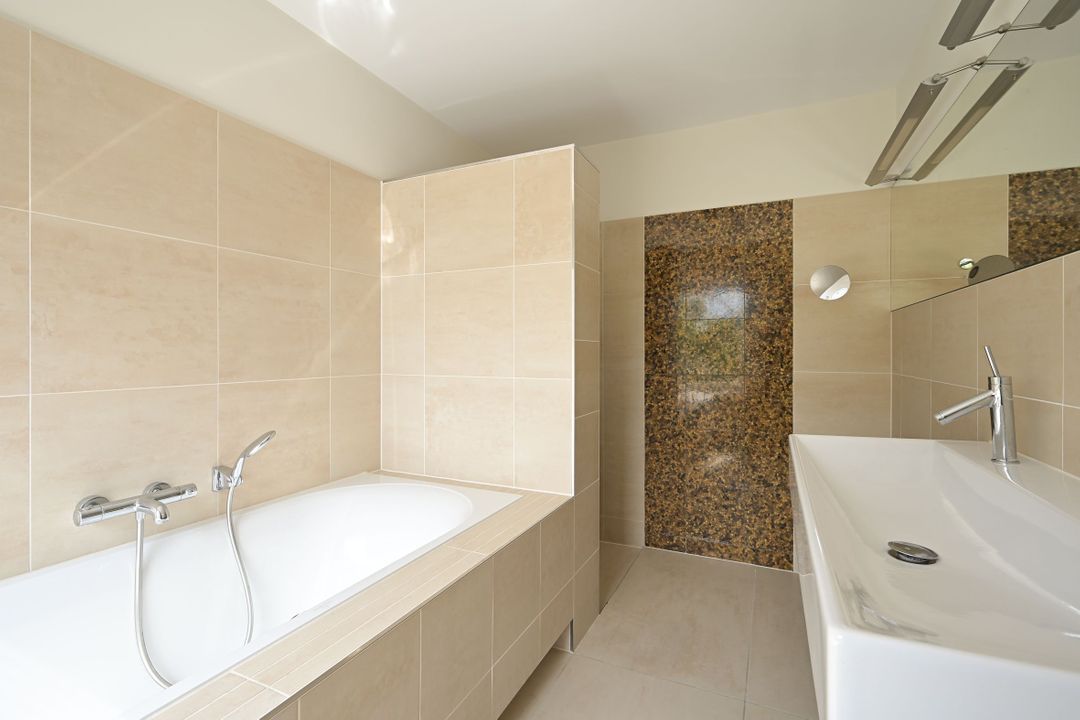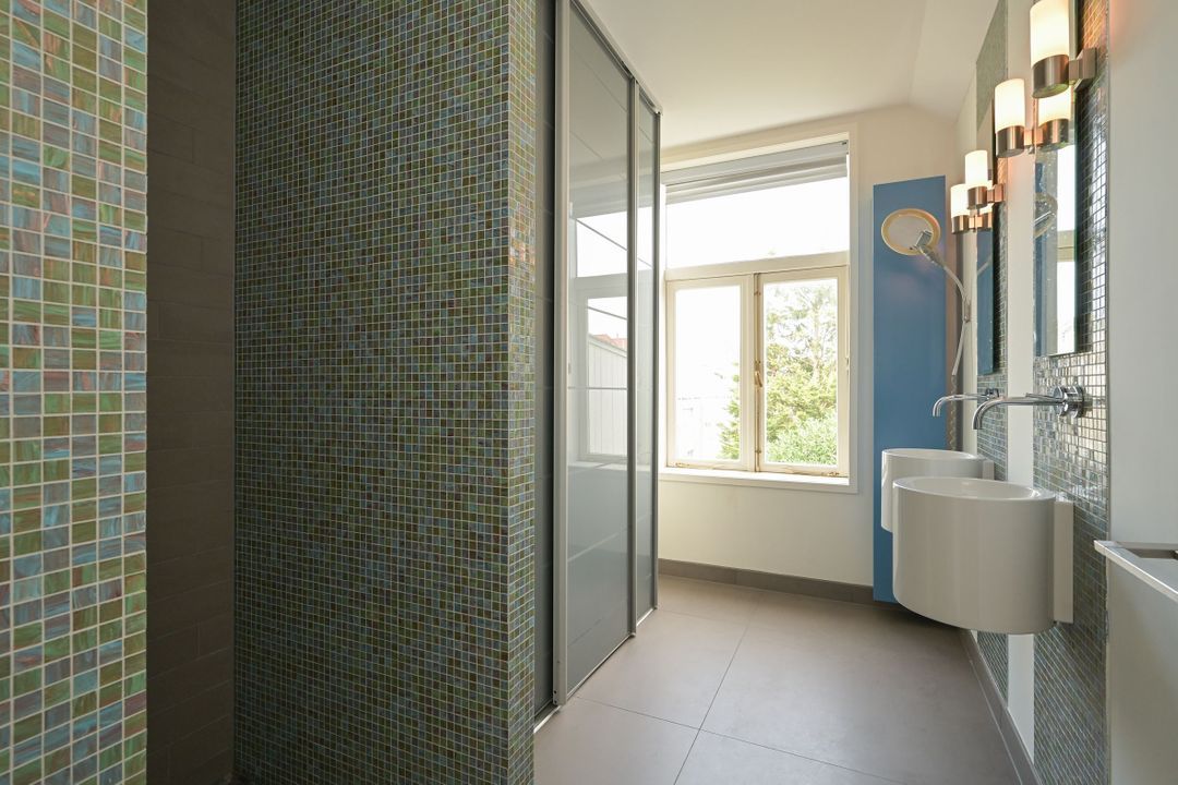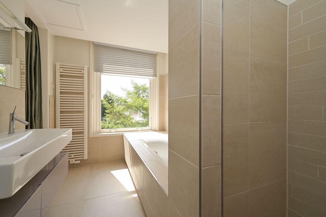 Trap naar de 2e etage: overloop met daaraan gelegen twee slaapkamers met elk een tussengelegen kast. Slaapkamer aan de achterzijde geeft toegang tot een ruim balkon (NO). Badkamer met inloopdouche, w.c., dubbele wastafels en kast met opstelplaats voor wasmachine en droger. De slaapkamer aan de voorzijde heeft een aangelegen moderne badkamer met ligbad, separate douche, dubbele wastafels.
