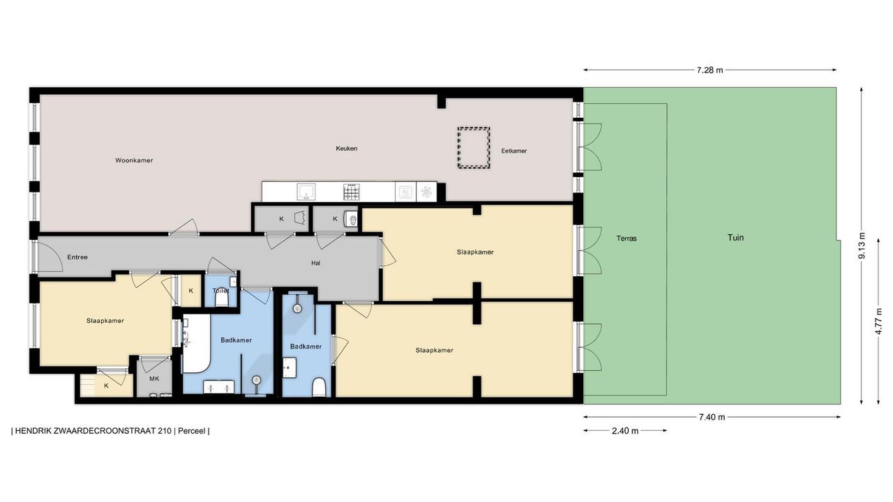 - Toegang vanuit 2 slaapkamers en eetkamer tot de fijne tuin op het Oosten