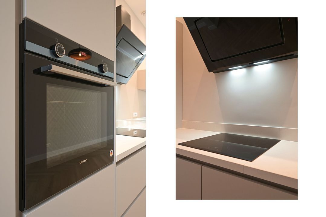 This high-quality kitchen with plenty of storage space is equipped with a composite worktop and various Siemens built-in appliances such as a dishwasher, fridge/freezer, oven and 4-burner induction hob.
