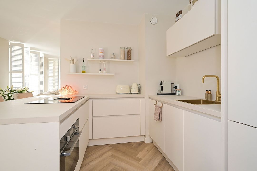 Woningentree via gesloten portiek; eigen voordeur; gang; ruime woonkamer; moderne luxe open keuken met kookeiland voorzien van inductiekookplaat, oven, koelkast, vriezer, vaatwasser en toegang tot de achtertuin; ruime slaapkamer; 2e slaapkamer/kantoor; moderne badkamer met inloopdouche en wastafelmeubel; toilet (wandcloset); riante zij-achtertuin met sfeervolle louncheplek/overkapping.