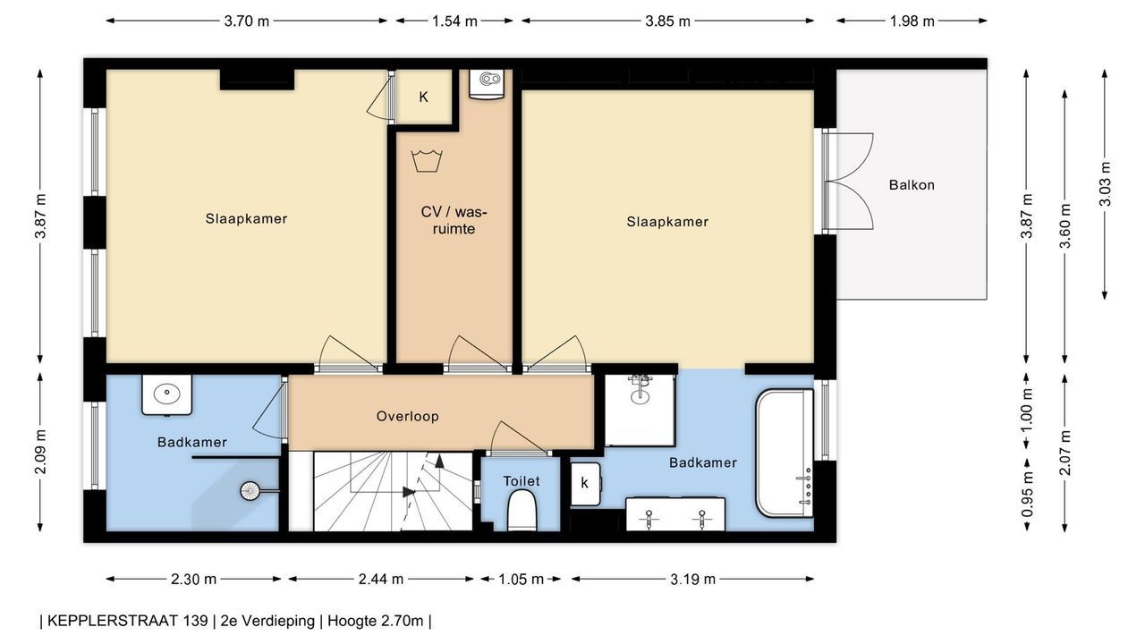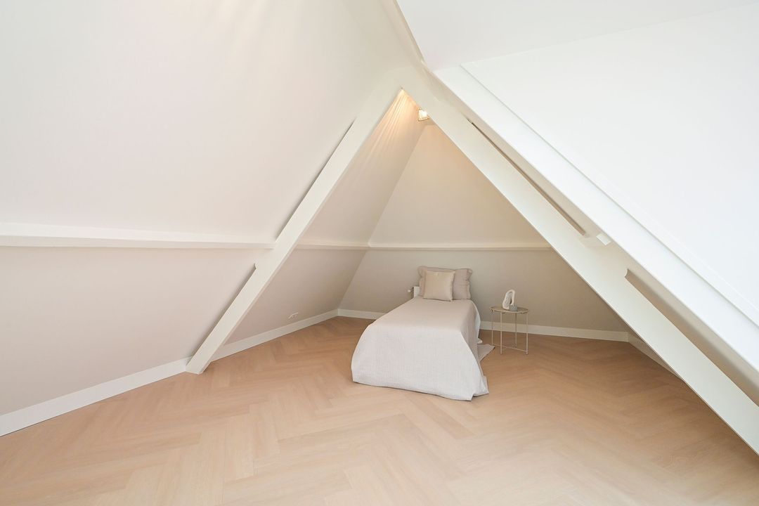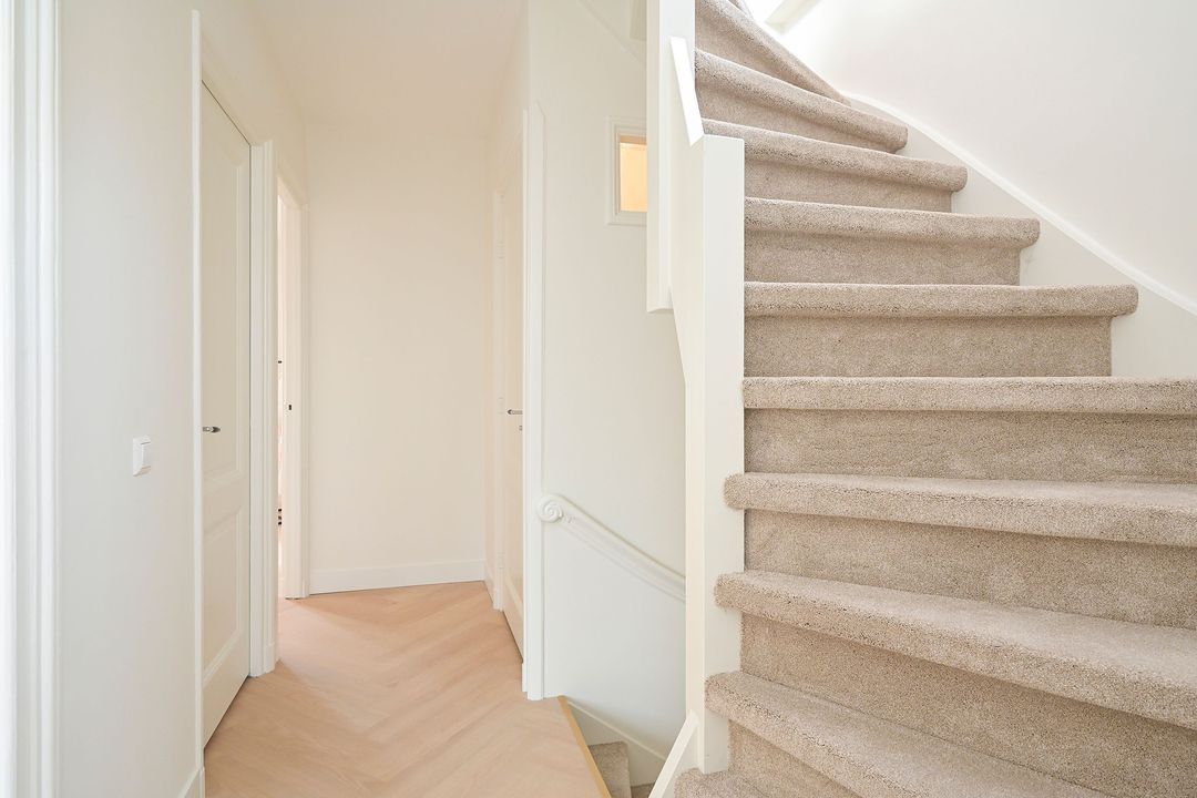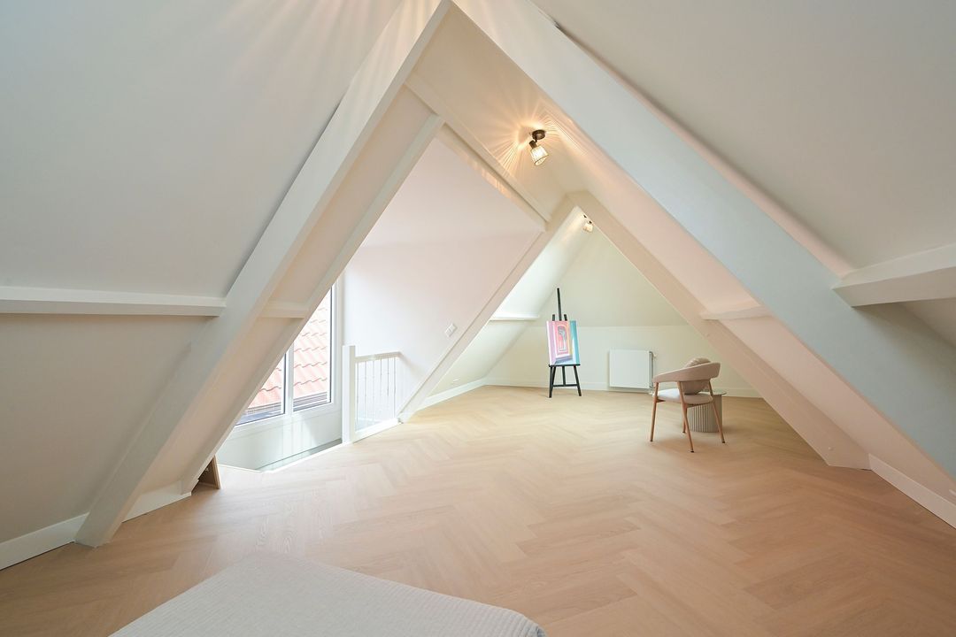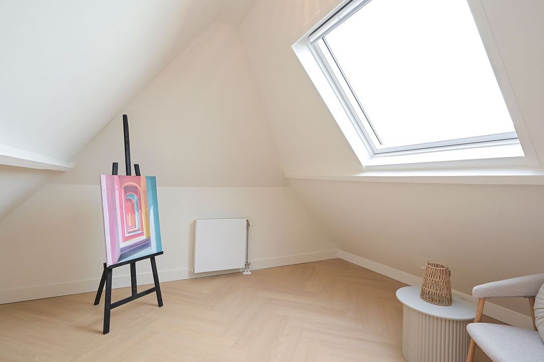 Lichte overloop met vaste trap naar de zolderverdieping, toegang tot alle overige vertrekken. Separaat modern toilet. Aan de voorzijde moderne badkamer met inloopdouche en wastafelmeubel. Tussen de grote slaapkamers bevindt zich een interne berging/ technische ruimte met opstelplaats van de nieuwe CV-ketel en aansluitingen voor wasmachine en droger.