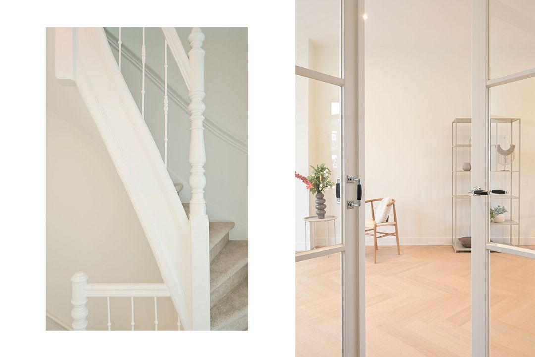 Gestoffeerde trap met authentieke balustrade naar de 2e verdieping.