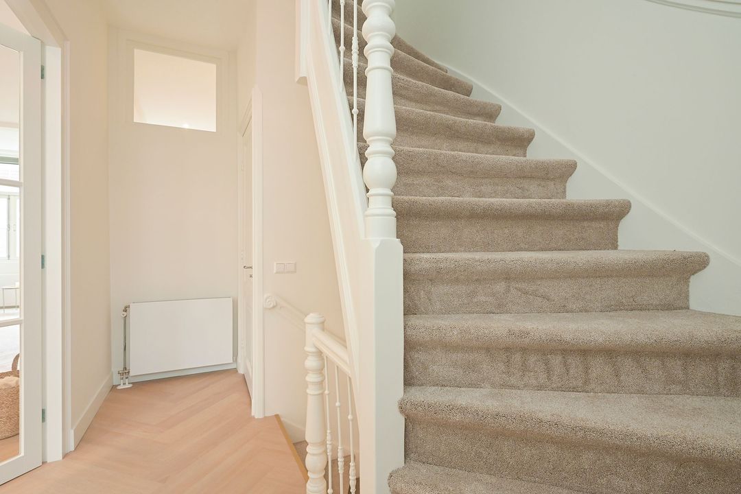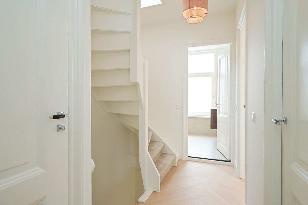 Via eigen voordeur entree, hal met meterkast gemoderniseerd met 12 groepen, 3 aardlekschakelaars en 3-fasenstroom, originele houten trap, gestoffeerd, naar de 1e etage.