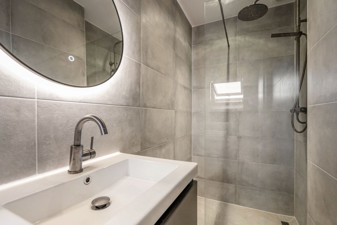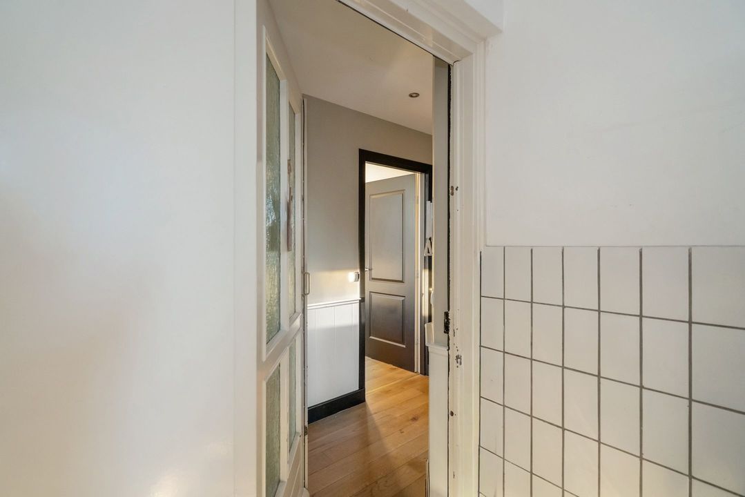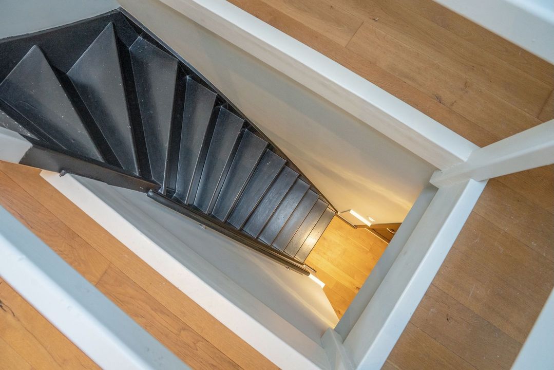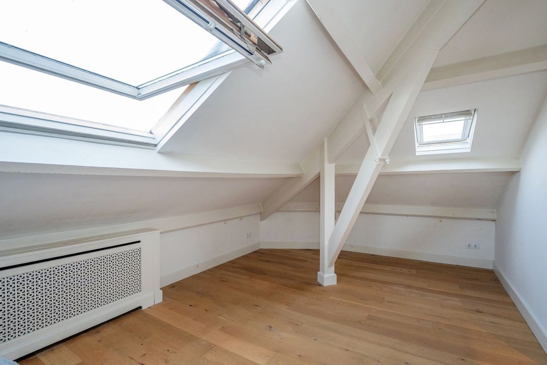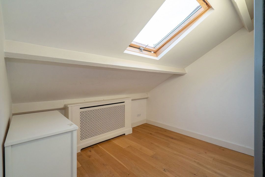Via de vaste trap bereik je de zolderverdieping. Hier vind je een ruime overloop met dakraam en volop bergruimte. Aan de achterzijde ligt slaapkamer drie, terwijl aan de voorzijde een verrassend ruime vierde slaapkamer is met twee Velux dakramen. Tussen de slaapkamers in bevindt zich de moderne badkamer met douche en wastafel, evenals een aparte kast voor wasmachine en droger. Ook hier zorgen de houten vloeren voor een warme, huiselijke sfeer.