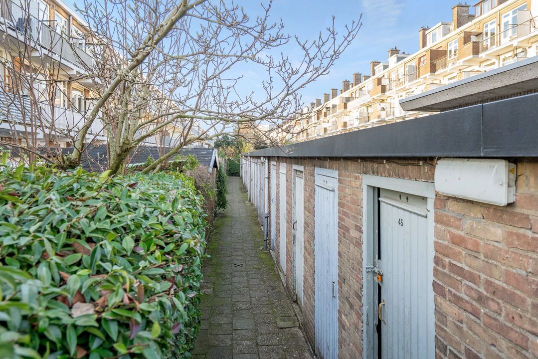 Achter het gebouw, bereikbaar via een afgesloten poort, ligt de fietsenberging – veilig en praktisch.