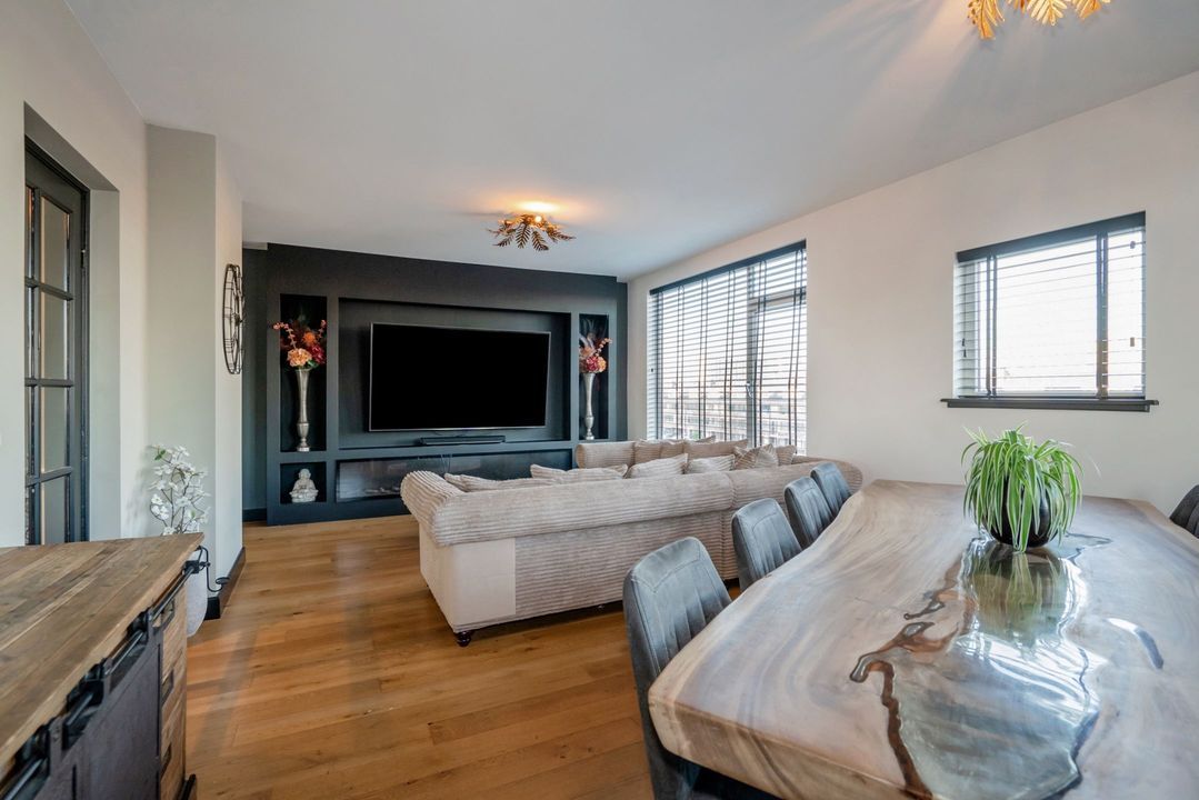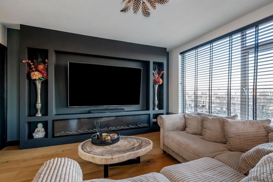 Via het portiek en trappenhuis bereik je de entree op de derde verdieping. De ruime gang met vaste kast en modern toilet geeft toegang tot de lichte woon- en eetkamer. Dankzij ramen aan twee zijden stroomt het daglicht rijkelijk naar binnen. De sfeervolle kastenwand met tv-nis en elektrische haard maakt dit een heerlijke plek om samen te ontspannen, terwijl het lamelparket zorgt voor een warme uitstraling.