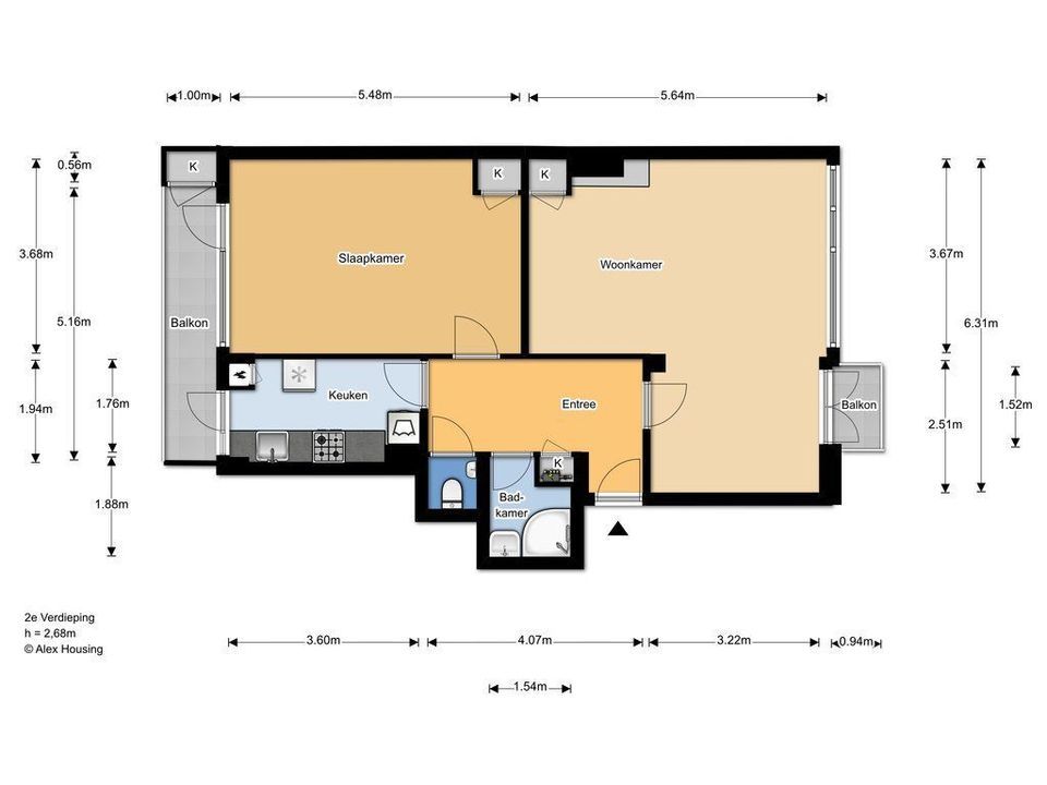 Zonnig balkon aan de voorzijde (ZW) én breed balkon aan de achterzijde