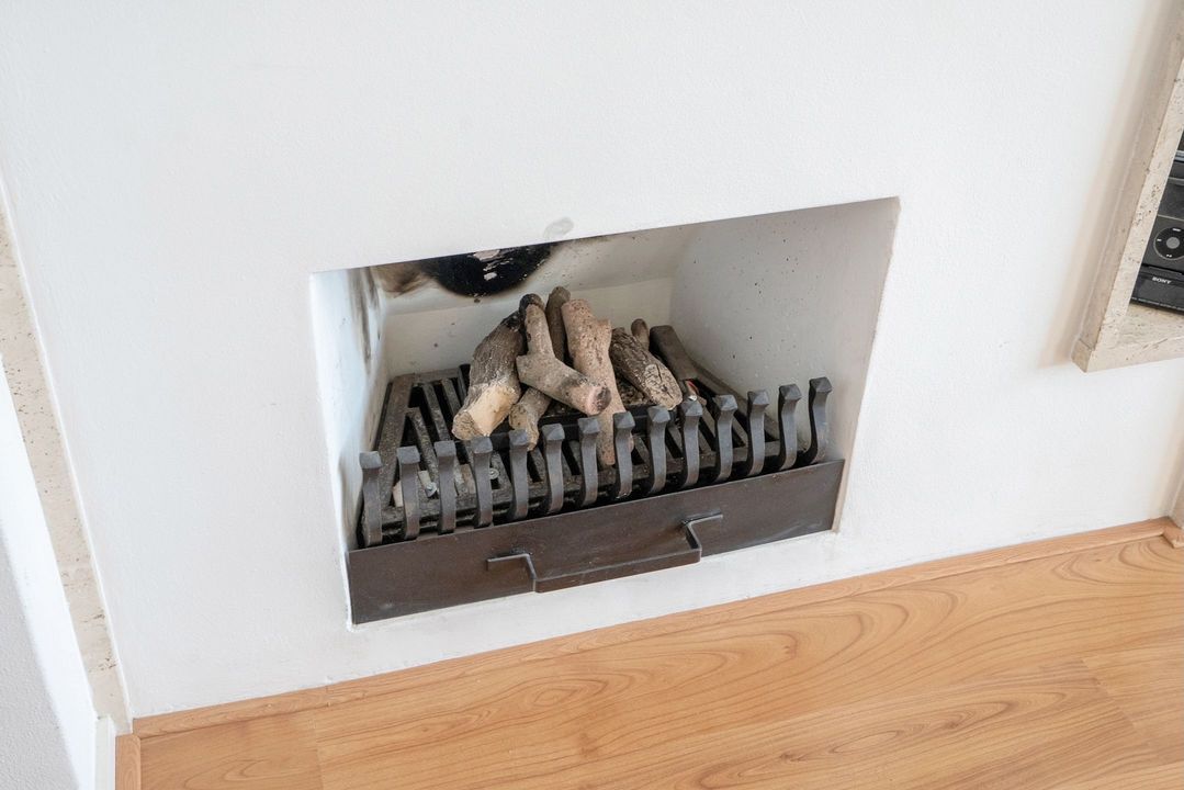 Aan de voorzijde bevindt zich de lichte L-vormige woon-/eetkamer met prachtige lichtinval, gas open haard en toegang tot het zonnige voorbalkon (zuidwest) met vrij uitzicht door de straat.
