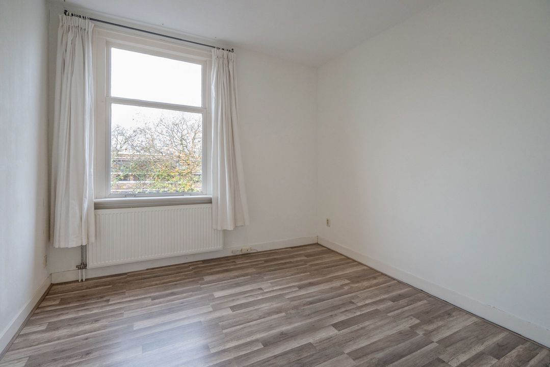 Aan de achterzijde de derde slaapkamer met vaste kast en uitzicht over tuinen.