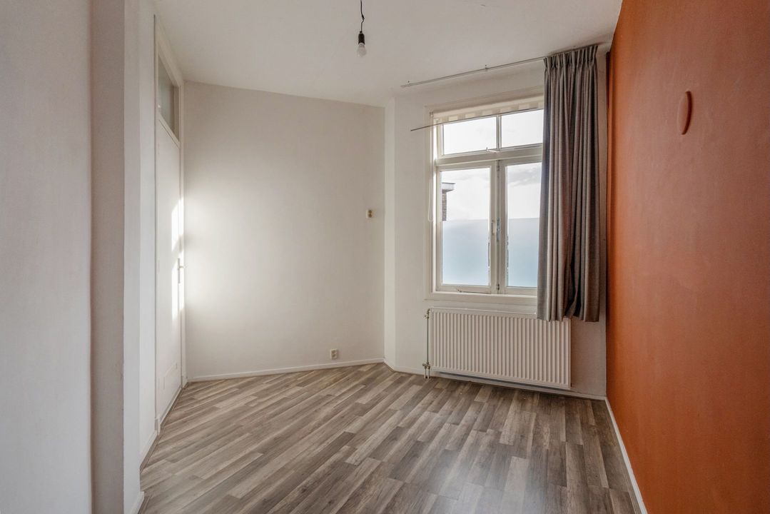 Vervolgens, aan de straatzijde een ruime, bijna vierkante slaapkamer met uitzicht op de straat. Daarnaast een tweede slaapkamer. Deze is iets smaller maar perfect als werk- of kinderkamer.