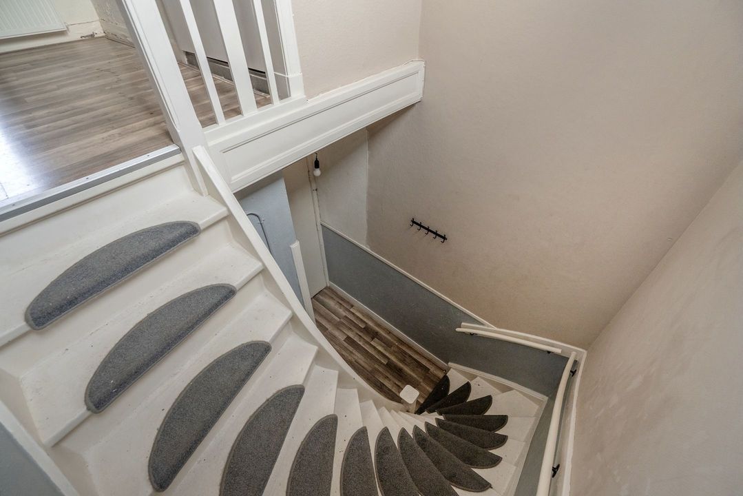 Indeling: Portiektrap naar slechts twee woningen. Entree nummer 62 op de eerste verdieping met een ruime hal en een trap naar de tweede verdieping. Onder de trap voldoende bergruimte (eventueel voor een fiets). Prachtige glas in lood ramen in de trapopgang.