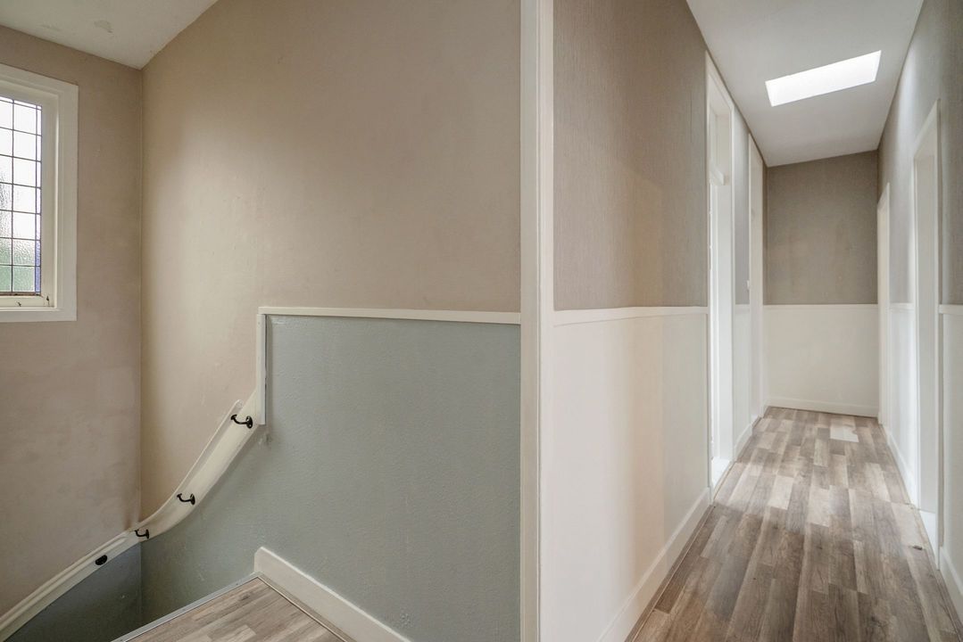Op de tweede verdieping een L-vormige gang met toegang tot alle vertrekken.